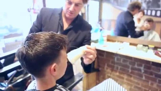 Le Garcon Fait Couper Ses Cheveux Dans Le Vestiaire Hommes De Salon